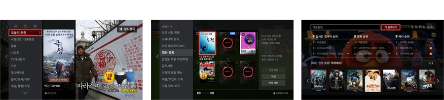 - 저사양 750DMIPS STB에서부터 Smart/UHD 고성능 STB까지, 모든 사용자가 차별없이 KT의 고품질 서비스를 이용할 수 있도록 하는 것이 프로젝트 과제였습니다. 즉, STB의 종류와 하드웨어 제원에 대한 제약 없이 신규 서비스와 다양한 콘텐트를 제공할 수 있는 One Brand UI Service를 제공하여, 서비스 브랜드 관리를 일원화하고 이를 통해 브랜드 가치를 다시 한 번 제고 시키는 것이 목표였습니다.