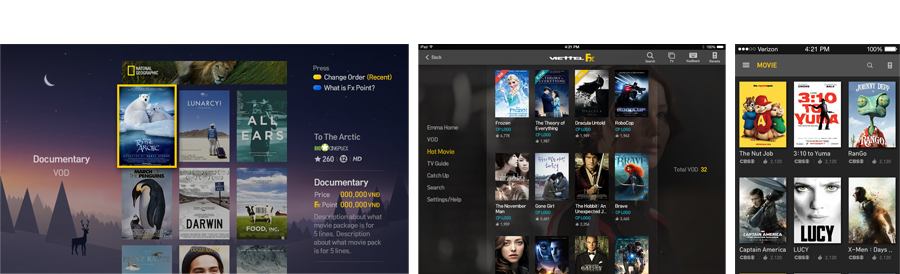 Viettel Multi-Screen Service Viettel은 베트남, 아시아,라틴 아메리카, 아프리카 지역에 6천만 이상의 고객을 보유한 베트남의 무선 통신 사업자이며, Mobile, Broadband, Cable, IPTV의 다양한 분야에 걸쳐 높은 수준의 통신 서비스를 제공하고 있습니다.